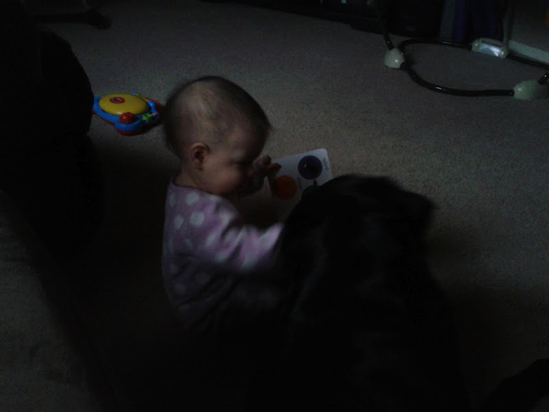 | Bad picture but this is when Kais had her book and was patting Kohl |