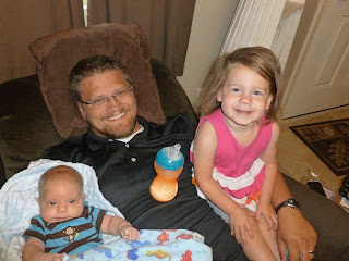 Mr. Kash is now two months old! At his checkup he was 21.25 inches long, 10lbs 8 oz and is growing at a normal rate. He is still in his 3 month clothes although newborn pants are now too small and 3 month pants are too long. He is starting to find his voice and talks and smiles at his Mom a lot. He still eats well and sleeps well. I usually put him down at 8 for the night and he wakes up at 4 to eat and then goes right back to sleep until 8 am. A few times this week I have had to go wake him up about 6 am to eat because he sleeps right through it. He loves to swing with classical music playing. We love this little boy!